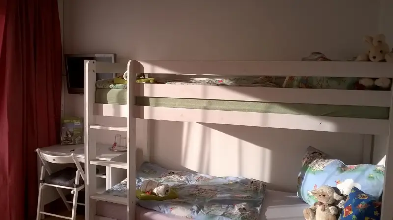 Hier findest du alles für eine Angenehmen Aufenthalt: Ein bequemes Doppelbett für erholsamen Schlaf und ein separates Zimmer mit Etagenbett. Das gepflegte Bad mit Dusche und WC, rundet den Aufenthalt ab.